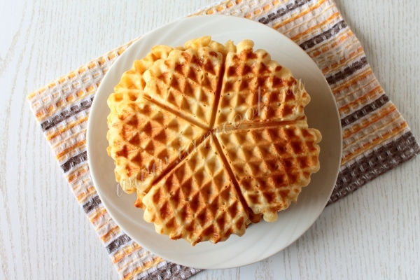 Тесто для вафель готовится с добавлением апельсиновой цедры, вафли получаются мягкими и вкусными. Для получения очень хрустящих вафель подержите тесто в вафельнице подольше.