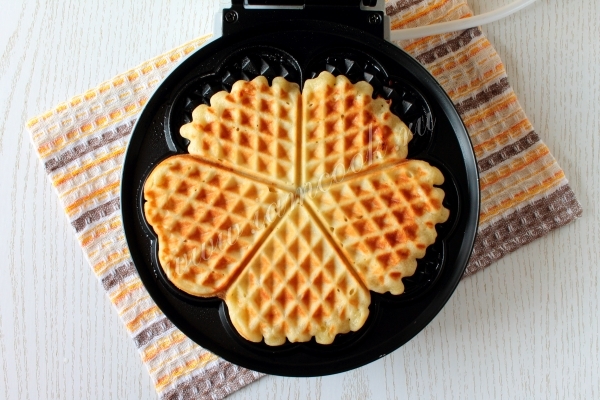 Выпекайте вафли в разогретой вафельнице, в течение 3-4 минут, набирая по 2-2,5 ст. л. теста.
