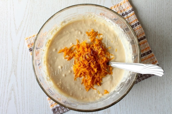 С апельсина потрите цедру и вмешайте в тесто.