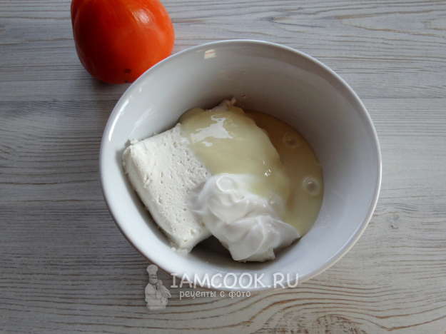 летнДесерт с хурмой и творогом готовится из таких ингредиентов.
