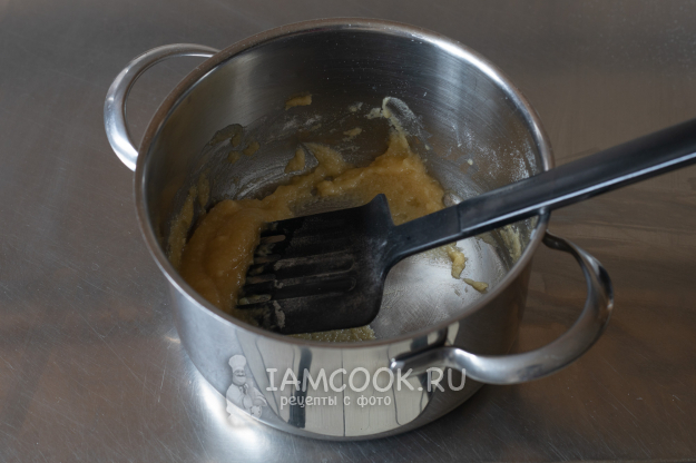 Растапливаем в небольшой кастрюле с толстым дном сливочное масло.