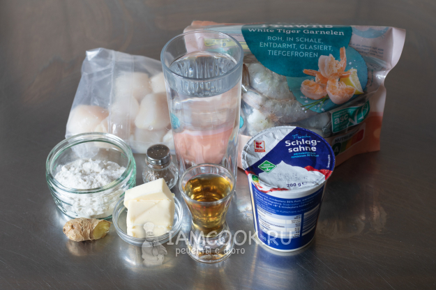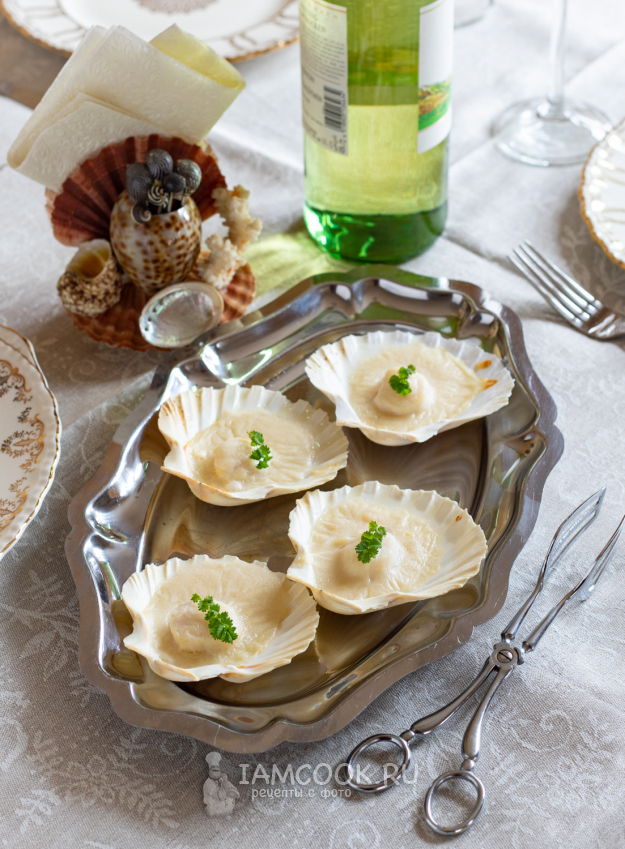 Ингредиенты для приготовления гребешков в раковинах соберите по списку.