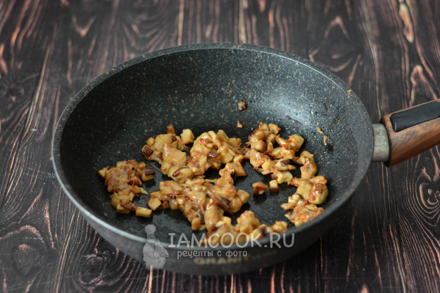 Если будете использовать свежие шампиньоны или вешенки, то их также нужно будет нарезать на кусочки и поджарить на масле.