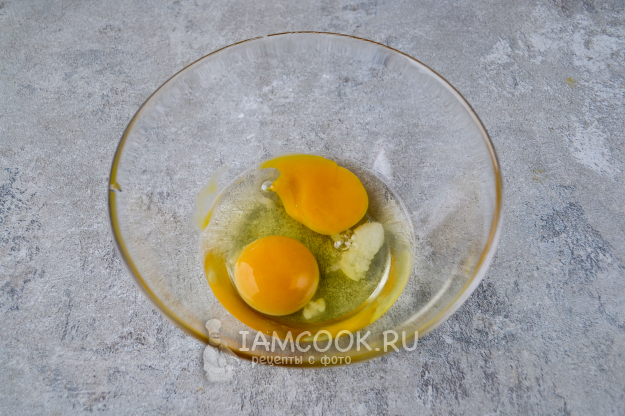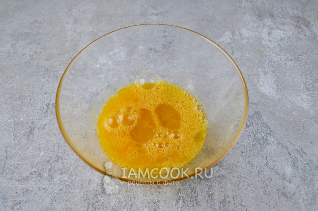 Венчиком или вилкой взбейте яйца до однородной массы, влейте 1 ч.л. растительного масла, перемешайте.