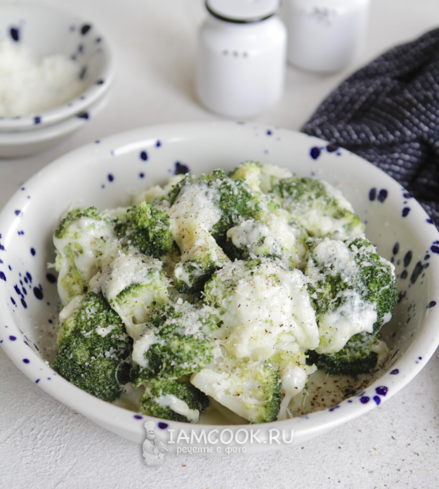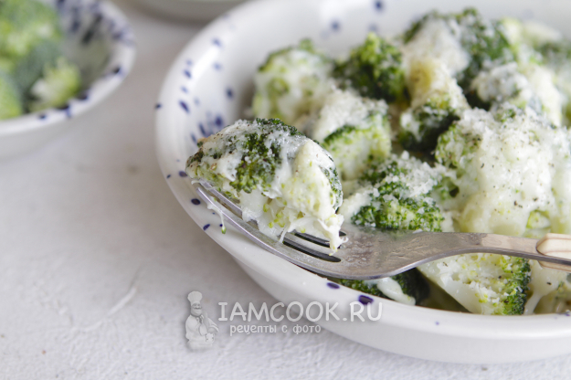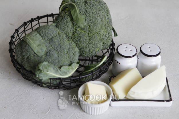 Все необходимые продукты для приготовления брокколи с сыром на сковороде соберите по списку.