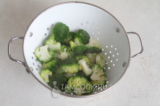 Через указанное время откинуть капусту на дуршлаг. Через пару минут брокколи переложить на бумажное полотенце, чтобы максимально убрать лишнюю жидкость.