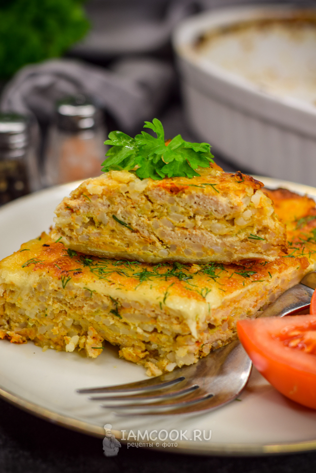 Запеканка из кабачков с фаршем и рисом готова. Можете подавать к столу.