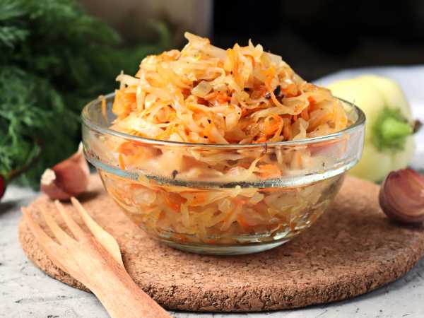 Во время запекания квашеной капусты в духовке один раз перемешайте всю массу, чтобы она равномерно приготовилась. Затем аккуратно извлеките из духовки и слегка остудите.