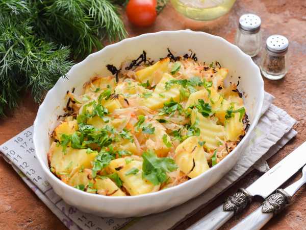 Продукты для приготовления запеченной квашеной капусты в духовке - перед вами!
