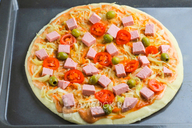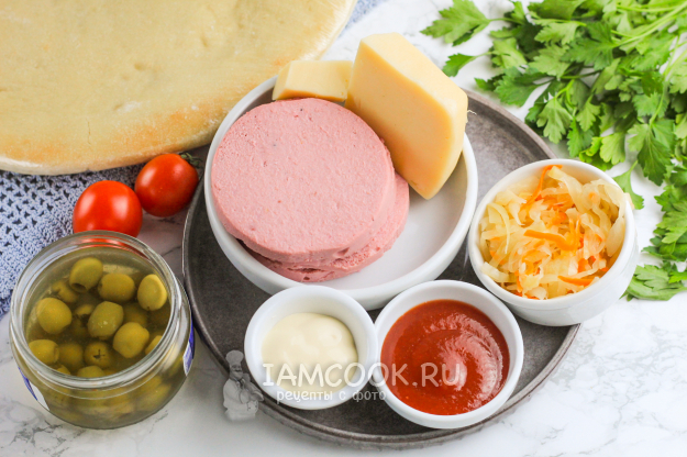 Продукты для пиццы с квашеной капустой и колбасой - перед вами!