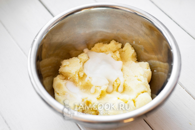 Отжатую картофельную массу переложим в миску, добавим отстоявшийся картофельный крахмал и соль. Перемешаем все ложкой до получения однородной массы.