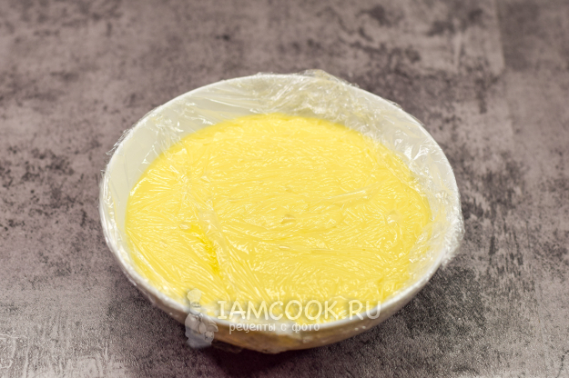 Переложите крем в миску, прикройте пищевой пленкой "в контакт". Поставьте крем остывать.