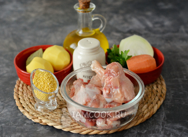Соберите по списку все необходимые продукты для приготовления кулеша с курицей.