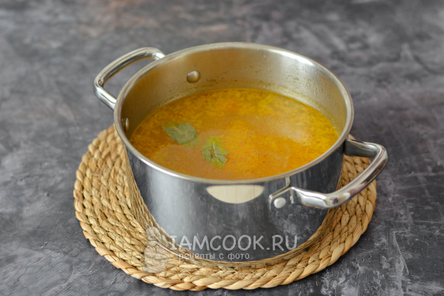 Как только картофель станет мягким, огонь под кастрюлей выключите, добавьте в суп лавровый лист и дайте кулешу настояться под крышкой около 15 минут.