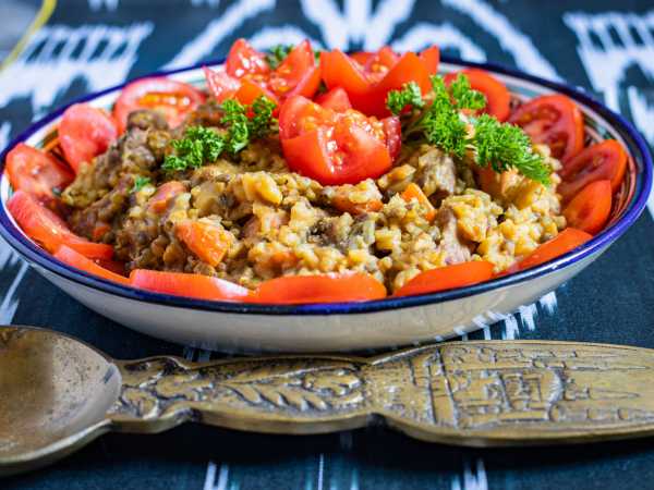 Соберите все продукты для приготовления каши из маша и риса по-узбекски. Традиционно такую кашу готовят с мясом: из кусочков говядины, баранины, иногда добавляют фарш. Но когда стоит задача немного сэкономить, можно приготовить постную кашу. Поверьте, получается очень вкусно, но самое главное - сытно. Для ускорения приготовления блюда маш заранее замачивают. Я же предпочитаю варить его просто дольше по времени.