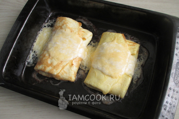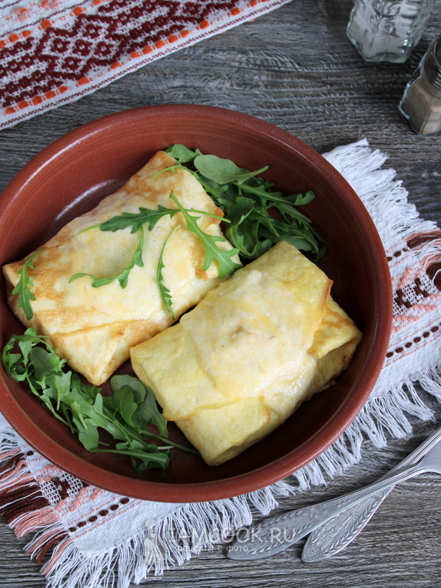 Через 15 минут добавьте сырную массу на конверты и запекайте ещё считанные минуты - до расплавления сыра. Теперь думаю, что майонез или сметану к сыру можно было и не добавлять...