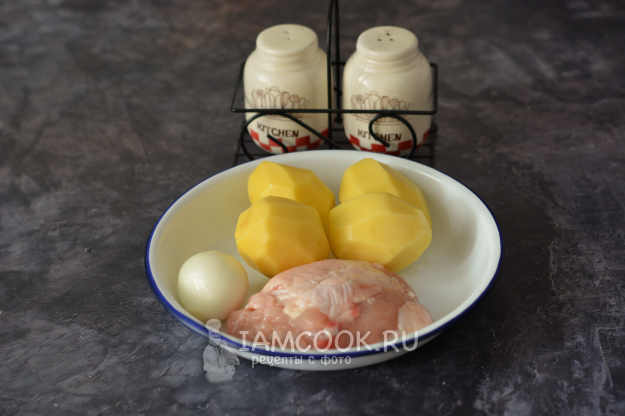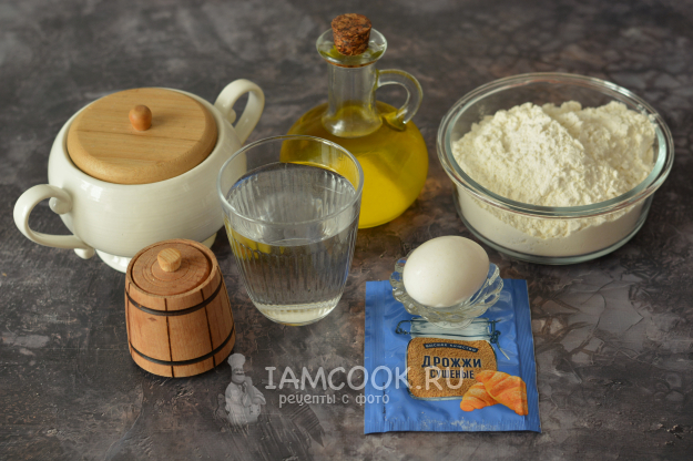 Соберите ингредиенты для приготовления пирога из дрожжевого теста с курицей и картошкой. Начнём с дрожжевого теста.
