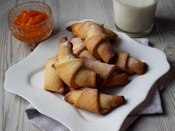Переложить рогалики на противень. Прикрыть полотенцем и оставить на 10-15 минут "отдохнуть".