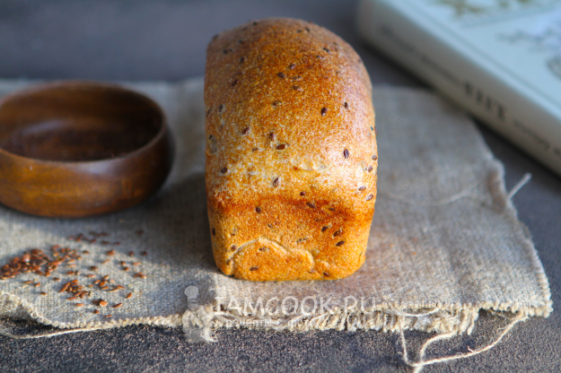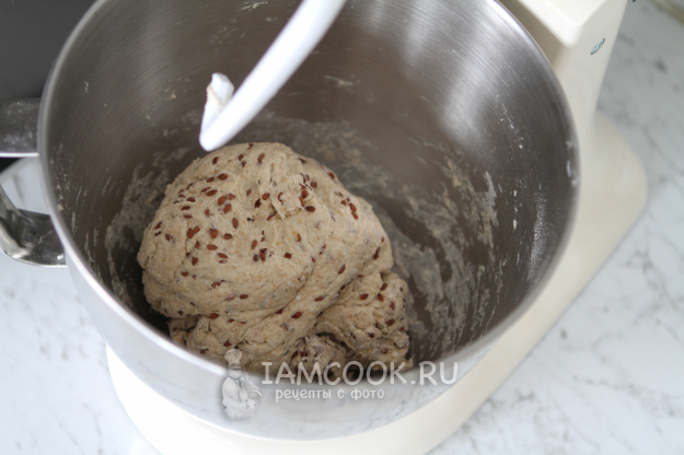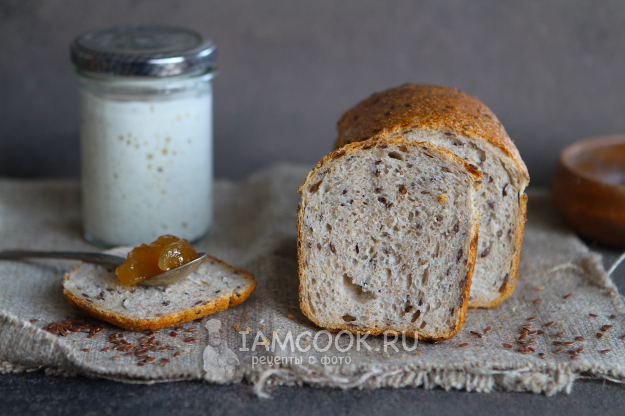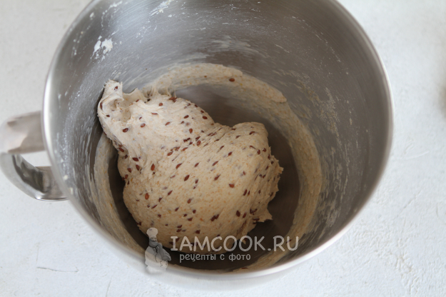 За 5-6 часов до выпечки обновить закваску. Параллельно замочить 35 г семян льна в 105 мл воды комнатной температуры. За это время семена льна хорошо набухнут.