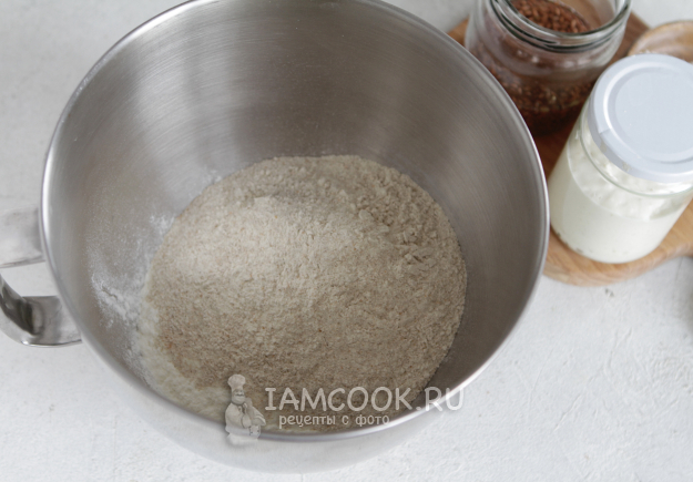 В чашу отправляем два вида муки.