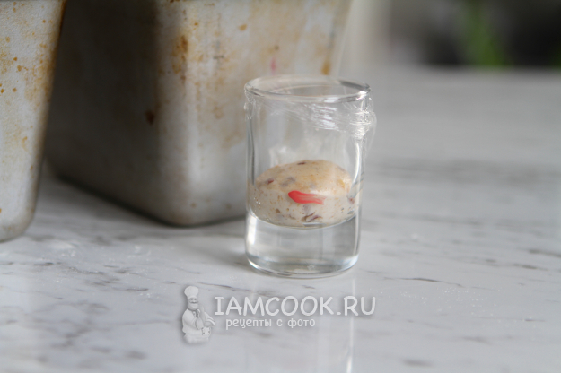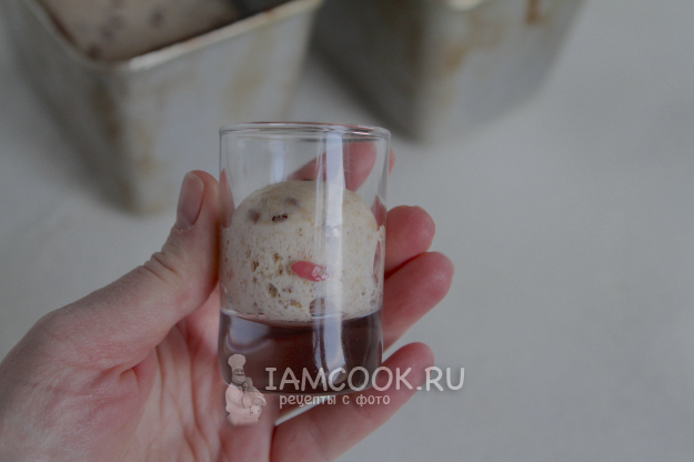 Небольшой кусочек теста переложить в стакан. По нему мы будем оценивать процесс созревания теста.