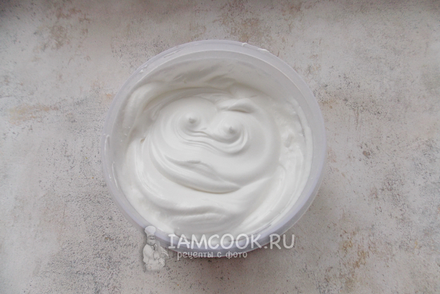 Белки выложите в высокую форму и взбейте до мягких пиков. После добавьте ванильный сахар, и постепенно добавляя сахар, взбейте в густую, плотную консистенцию.