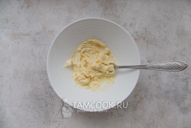 Перемешайте масло с сахаром с помощью вилки или миксера.
