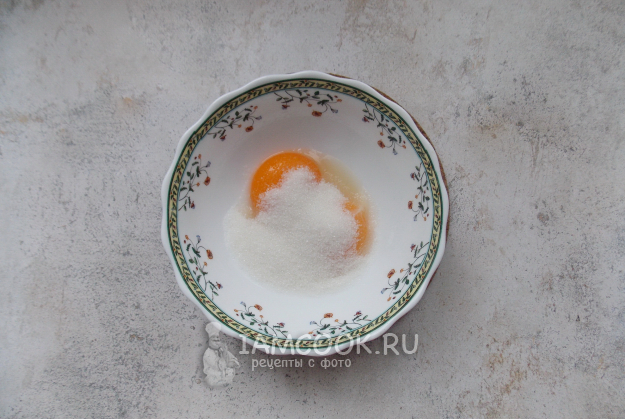 В миску выложите желтки и сахар.