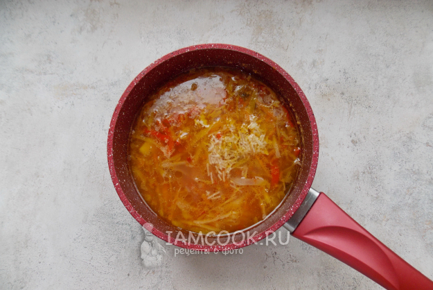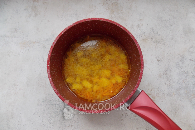 Добавьте нарезанный кубиками картофель и залейте бульоном или водой. Доведите до кипения и варите 10-15 минут.