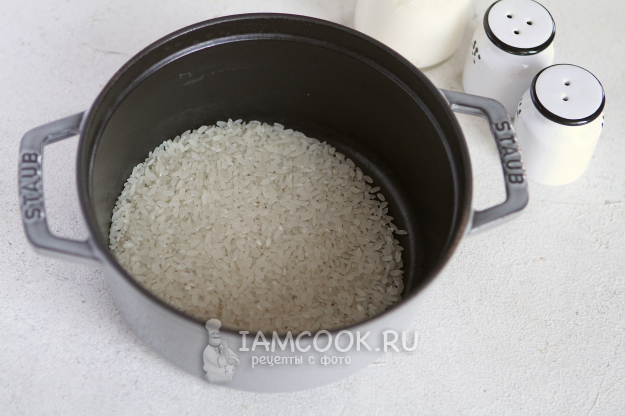 Рис необходимо хорошо промыть под проточной водой, затем откинуть его на дуршлаг.