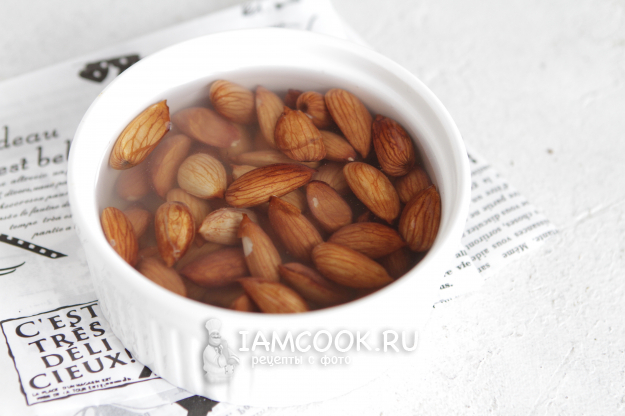 Миндальное молоко можно купить в магазине. Я предлагаю приготовить его в домашних условиях. С вечера необходимо замочить миндаль в прохладной воде.