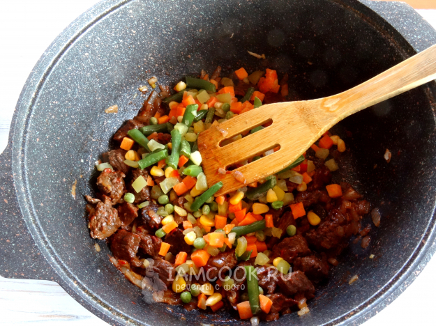Можно добавить мл 50 воды, чтобы овощи и мясо лучше "поженились").
