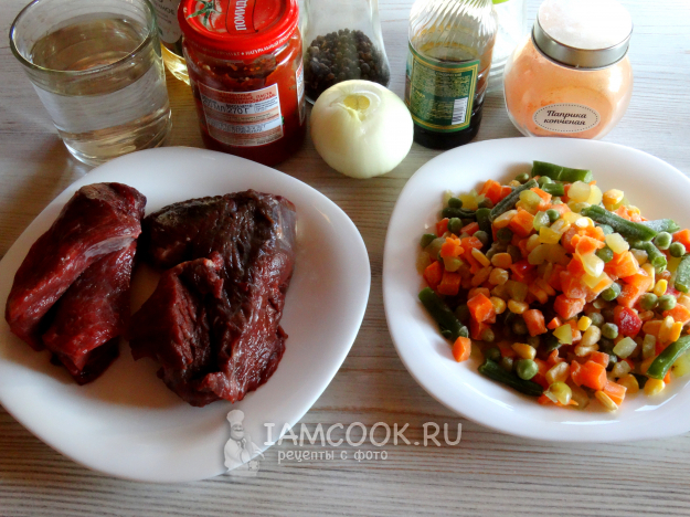 Возьмите ингредиенты для приготовления говядины с мексиканской смесью.