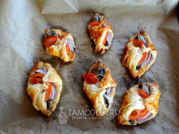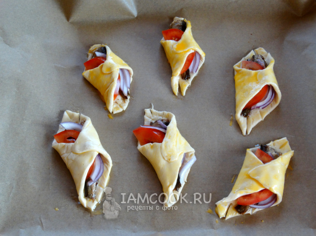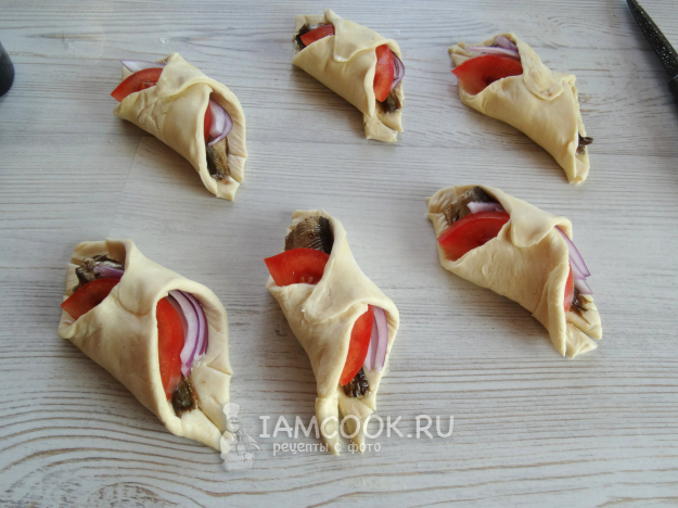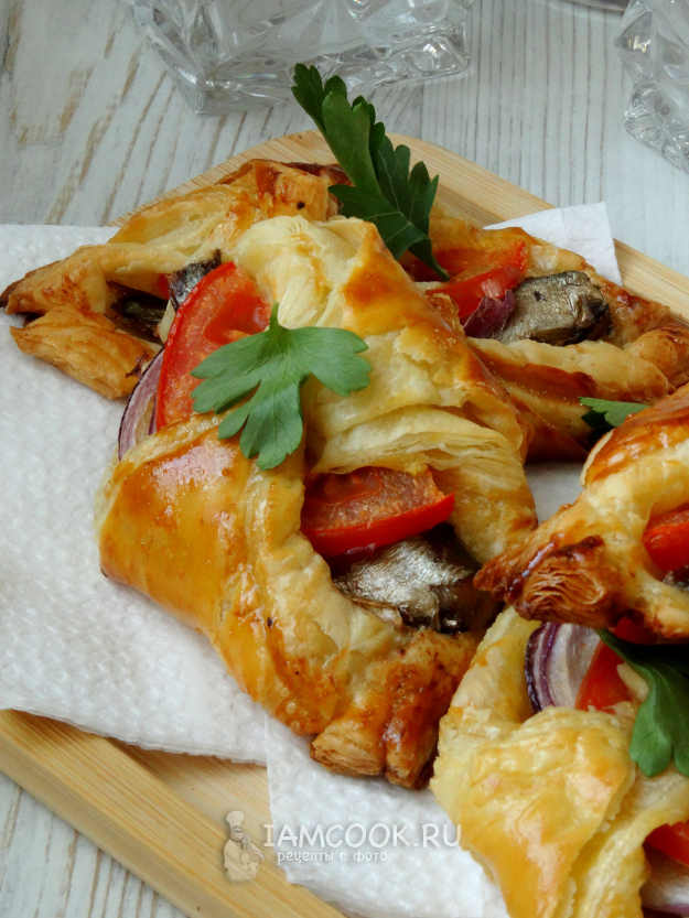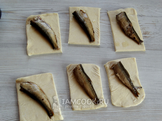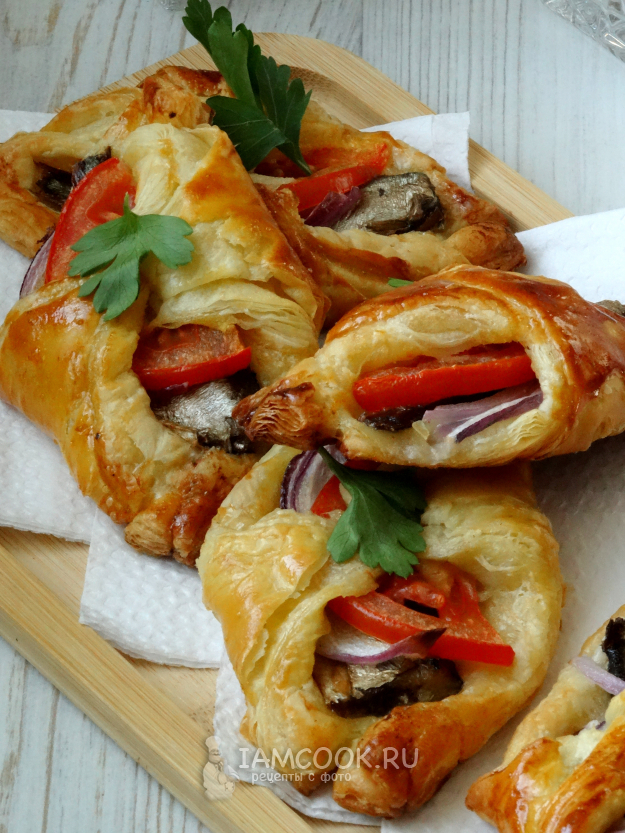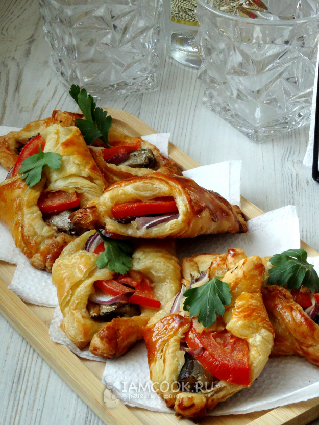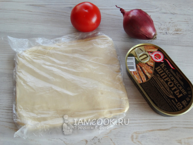 Шпроты в слоеном тесте готовим из таких ингредиентов.