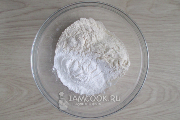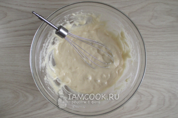 Перемешайте мучную часть с белковой.