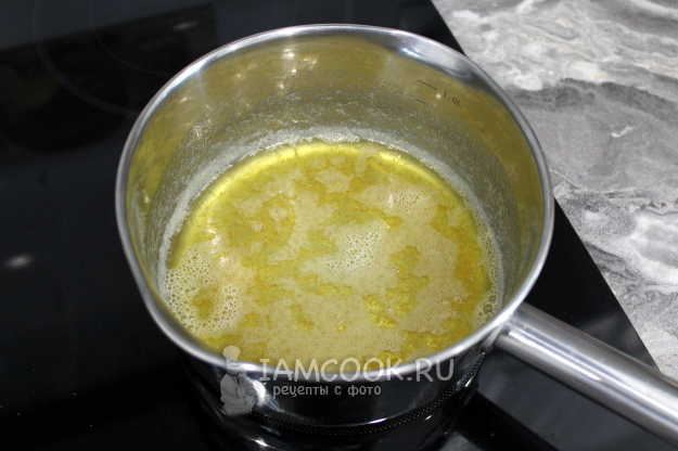 Сливочное масло нужно растопить в сотейнике не только до жидкого состояния, но и до изменения его вкуса и цвета. После того как масло расплавится на сильном или среднем огне, убавьте огонь до слабого и продолжайте готовить минут 5, до появления приятного, желательно орехового запаха и светло-коричневатого оттенка. Дайте маслу beurre noisette остыть до тёплого.