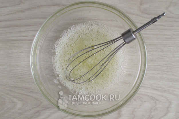 Яичные белки взбейте до однородного состояния и лёгкой пены.