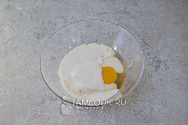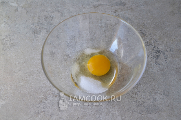 В миску разбейте яйцо, добавьте сахар и соль.