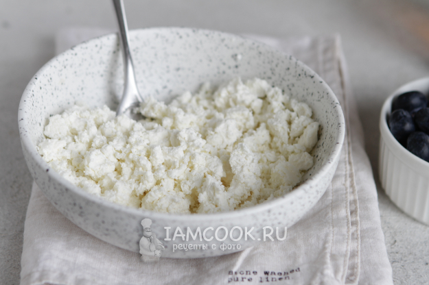 Творог можно выбрать любой жирности, фермерский, магазинный. Я готовила творог самостоятельно.