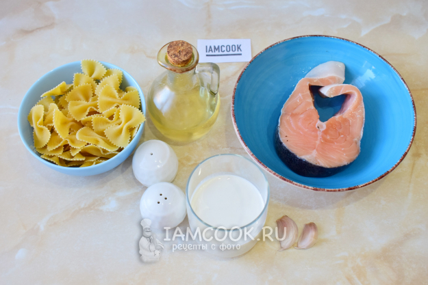 Перед началом приготовления пасты фарфалле с лососем в сливочном соусе соберите все ингредиенты по списку. Лосося берите охлажденного, который не подвергался заморозке. Сливки можно взять любой жирности. Чем выше жирность сливок, тем более сливочным будет вкус готового блюда.