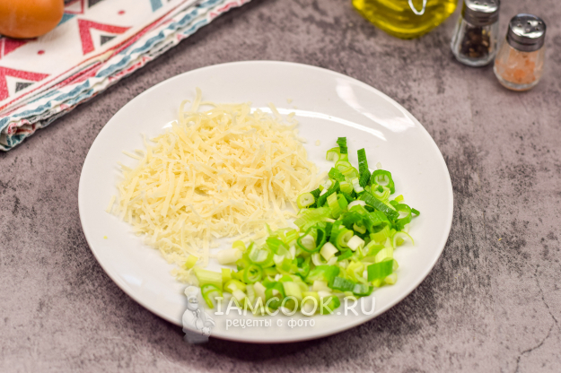 Сыр пармезан натрите на мелкой терке. Зеленый лук ополосните и нарежьте мелко.