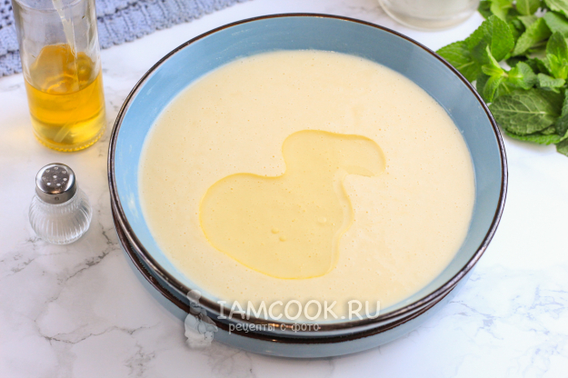 Вмешайте ее в массу и влейте растительное масло без аромата. Оставьте тесто на 15-20 минут в покое для активации клейковины. Если тесту не дать «отдохнуть», то блинчики будут рваться при переворачивании.