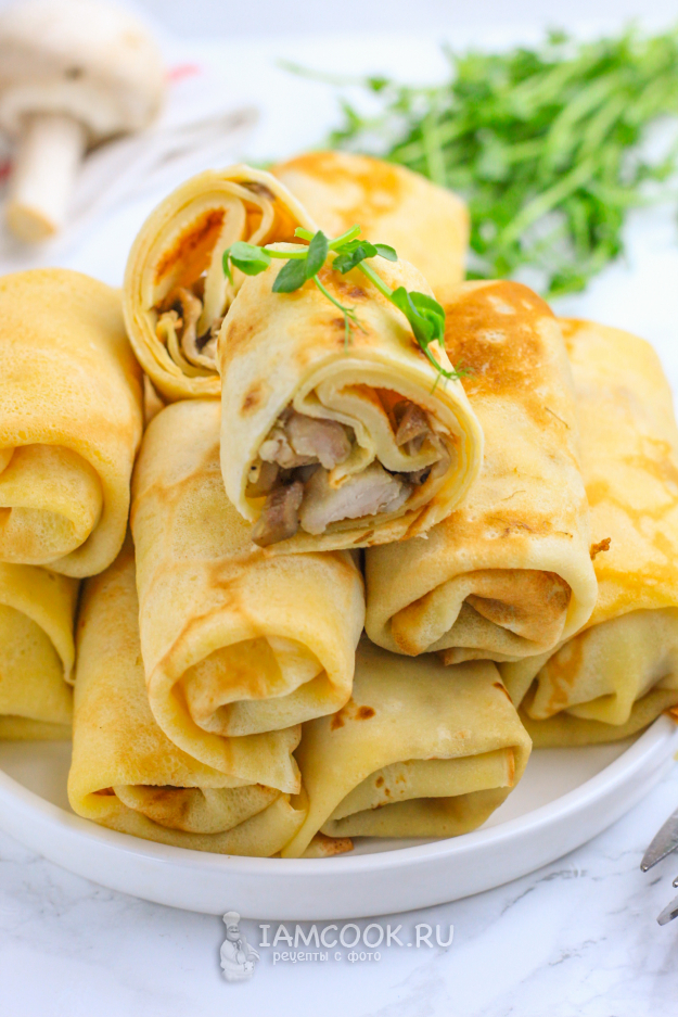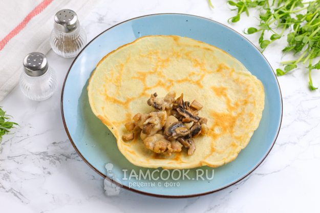 Продукты для приготовления блинов с курицей и грибами - перед вами!