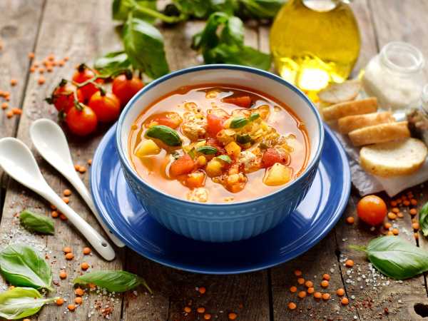 Соберите продукты по списку для приготовления чечевицы с курицей в духовке. Чечевицу заранее залейте водой и оставьте на несколько часов.