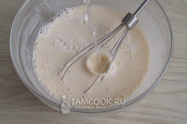 Дайте блинному тесту постоять около 20 минут, затем вмешайте в него растительное масло. Тесто будет выглядеть жидким - так и должно быть.