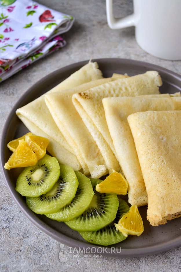 Подавайте блины с чем любите: сметаной, вареньем, маслом, джемом.