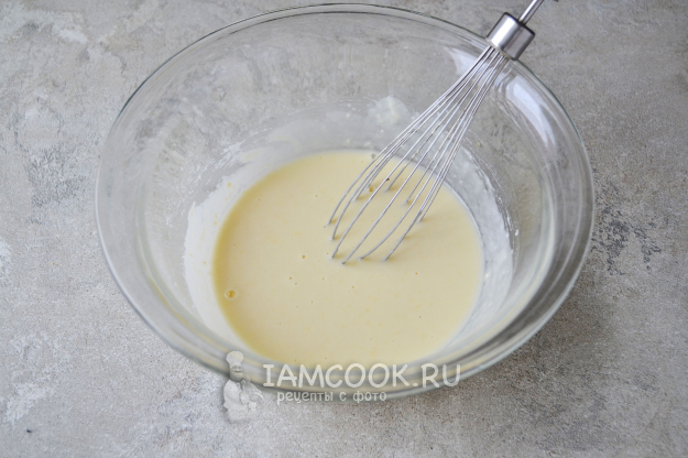 Венчиком тщательно перемешайте муку с водой, чтобы получилось однородное тесто без комочков.