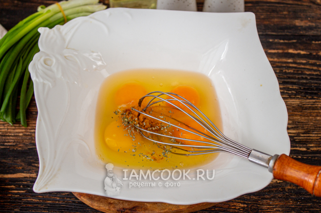 В подходящую посуду вбейте яйца, добавьте соль и черный молотый перец, взболтайте яйца, чтобы желтки и белки объединились. Сильно взбивать яйца не нужно.