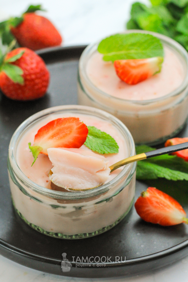 При подаче украсьте клубничный пудинг свежими ягодами, листочками мяты, присыпкой или взбитыми сливками.