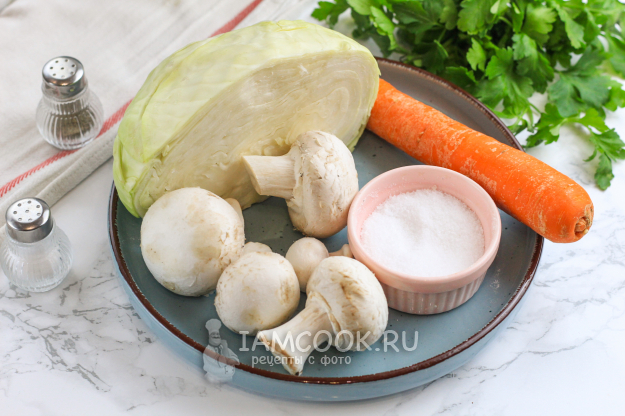 Продукты для приготовления квашеной капусты с грибами - перед вами!